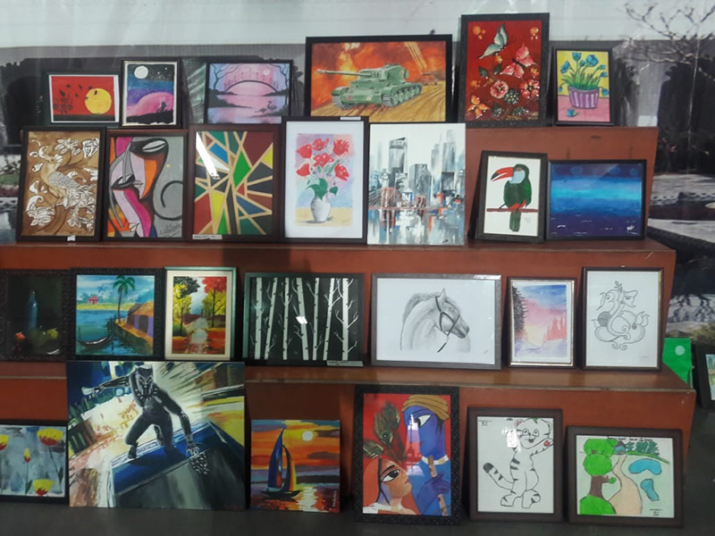 Gopalan National School Art and Craft Exhibition From Grade 1 to Grade X. A variety of Art works, crafts 3D models, painting sketches, pastel colouring, water colour Painting. Showcasing a rich variety of students work. Effort of students during the Academic produced from different age group. Opportunity to growing young artists to display their creative talents.