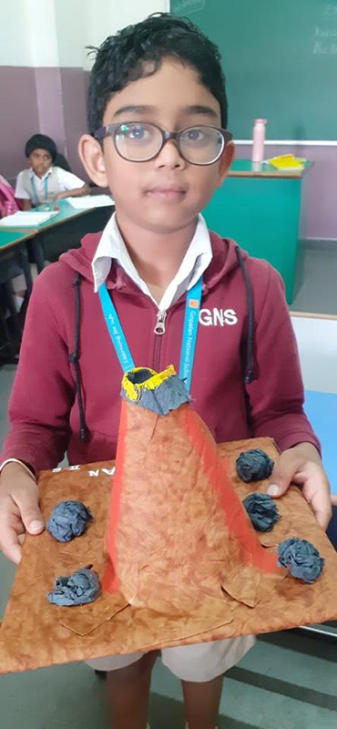 Doing science projects helps develop a child’s resourcefulness, particularly their skills at goal-setting, planning, and problem-solving. It also nurtures intellectual curiosity, helping children acquire new ways of asking questions and understanding the world. Children of grade 2 with the models of Earth and Globe to understand their planet more accurately. Project of volcano is also made by grade 2B student to understand formation of Mountains, rocks and hills.