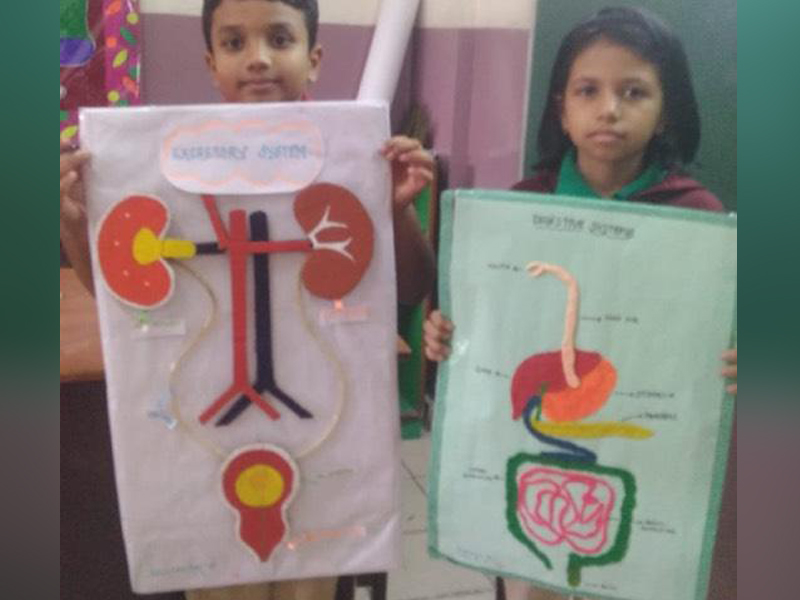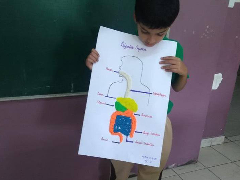 A very interesting science project was given to our bright students of fourth grade. They were told to make the model of digestive and excretory system and present it in class with explanation. An amazing exhibit of the models made us realise their genuine interest and their understanding of such important topics in the subject. The children confidently explained their models in the class, that brought lot of cheer and applause.