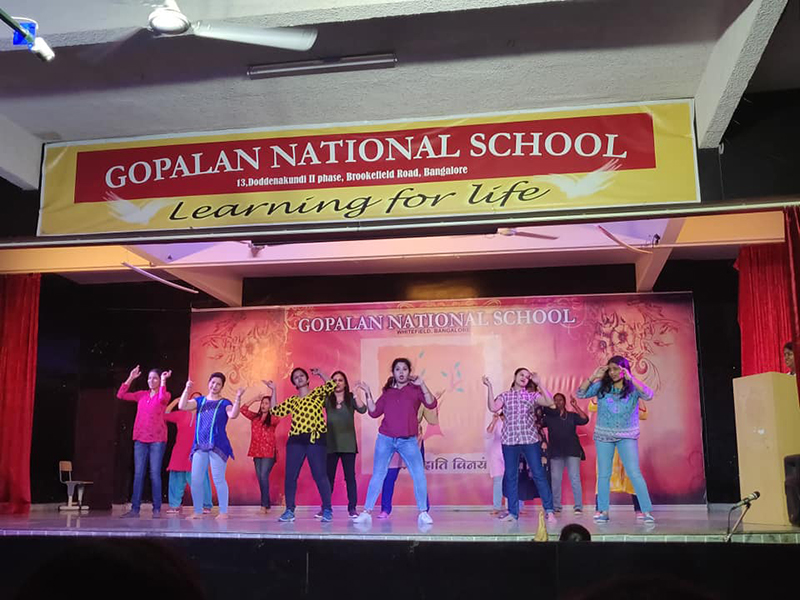 The staff members of GNS bid farewell to academic year 2018-19 in style by showing off their talent and leaving the audience spellbound. The mesmerizing classical dance performance by Mrs.Chethan was just the tip of the iceberg. The moving vocal performances by the preprimary teachers, Mrs.Linda, Mr. Johnson and Mrs.Seema led the audience to take a trip through memory lane. On the other hand, Mr. Stephen and Mr. Mario stole the hearts of the spectators with an electrifying guitar performance. The group dance to the melodious RabindraSangeet was very well choreographed and served to be a treat to the eyes. The various other dances, including solo performances by Mrs.Komal, Ms.Shraddha and Mrs.Rajni were set to peppy songs that brought out the fun and playful side of the artists. The skit by the transport department was hilarious. A special mention to Mrs.Sahaya for hosting the show in her easy, eloquent style. Overall, it was a splendid day that brought out the incredible hidden talent of the teachers.