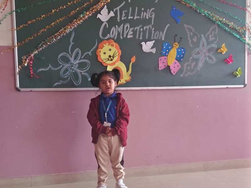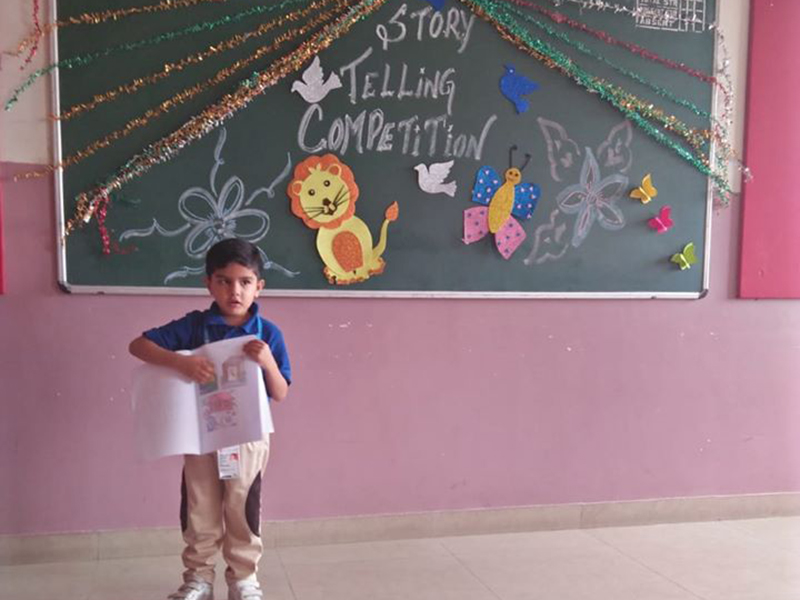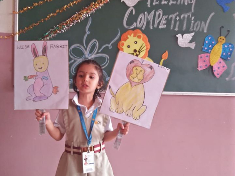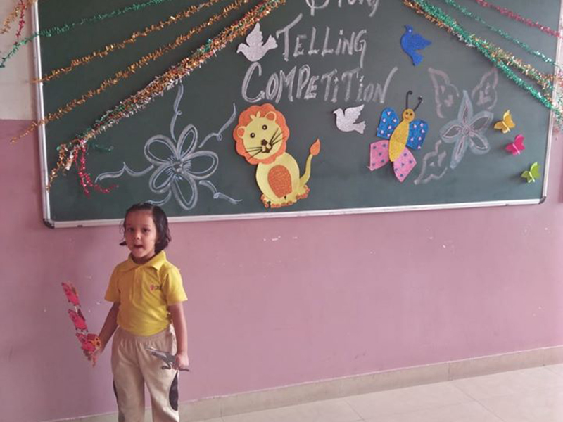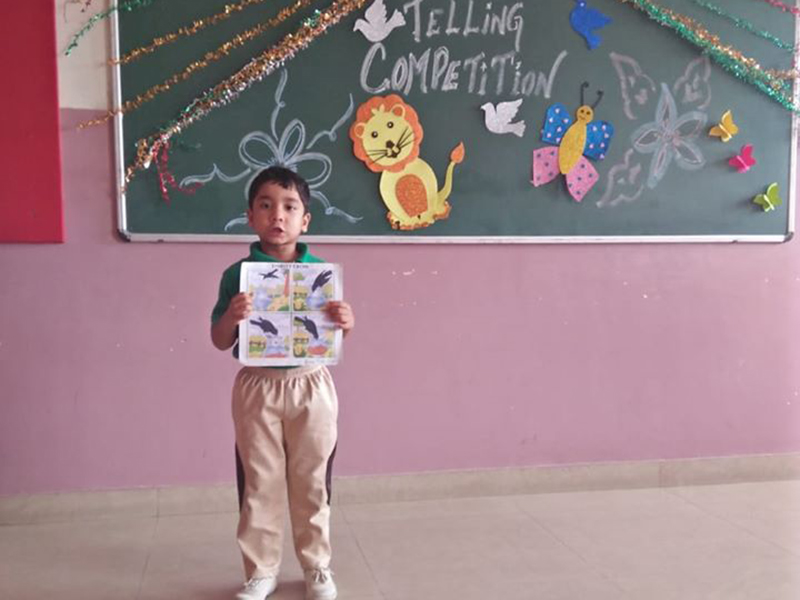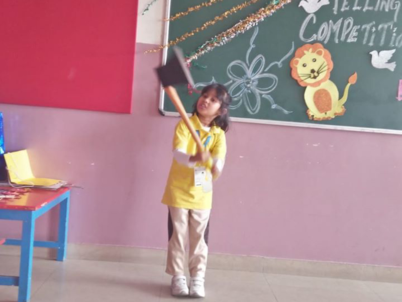 The narrators of Nursery exhibit their flair for telling STORY during the STORY TELLING COMPETITION. They told the story using props and were enjoying their skill.