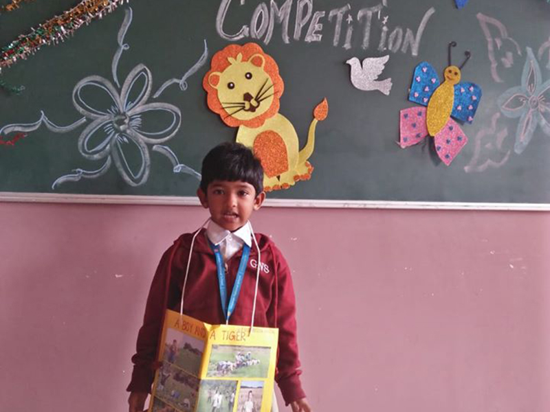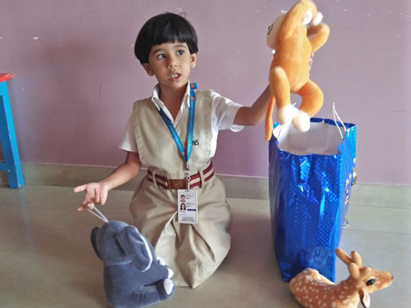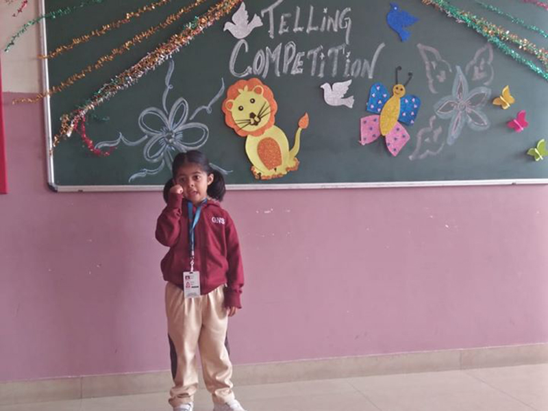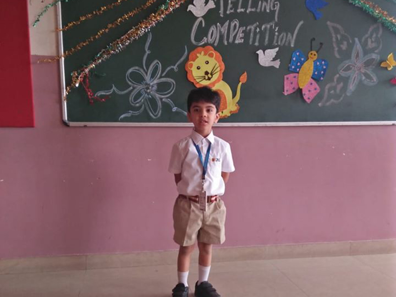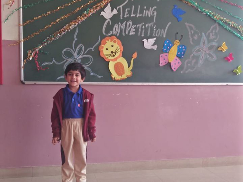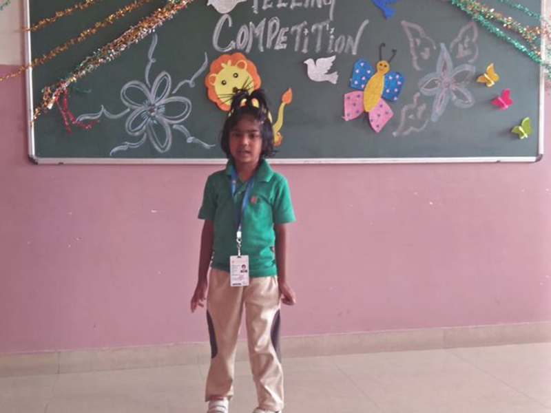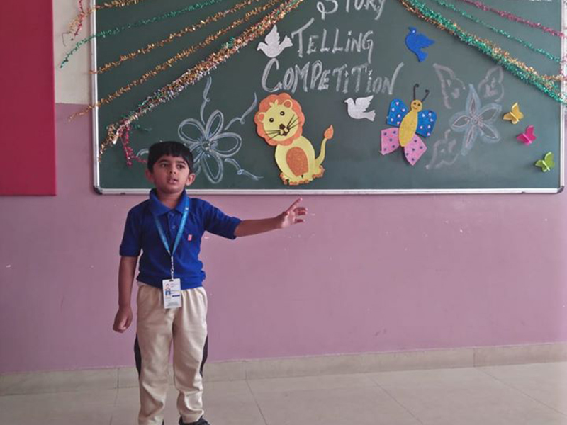 The narrators of Nursery exhibit their flair for telling STORY during the STORY TELLING COMPETITION. They told the story using props and were enjoying their skill.